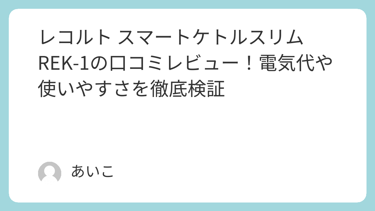 この記事では、レコルトの人気電気ケトル「スマートケトルスリム REK-1」について、実際の口コミや使い心地、電気代、安全性まで詳しくご紹介します。